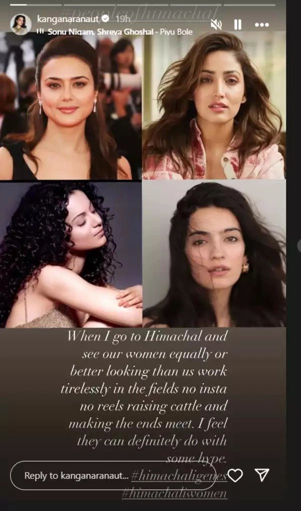 জাতীয় পুরস্কার প্রাপ্ত এই অভিনেত্রী লিখলেন তিনি তাঁর রাজ্যের এমন বহু শ্রমজীবী মহিলাদের আকছার দেখেছেন যাঁরা তাঁর থেকে তো বটেই এই অভিনেত্রীদের মতো কিংবা তাঁদের থেকেও সুন্দর দেখতে। এবং সেই সমাজমাধ্যমের প্রচারের আলোর বাইরে থাকা মহিলারা প্রতিদিন নিজেদের জীবন সংগ্রাম চালিয়ে যাচ্ছেন কোনও হাল্লা ছাড়াই। কঙ্গনার মতে, “আমি দৃঢ়ভাবে মনে করি, এঁদের হয়ে গলা চড়ানো উচিত।”