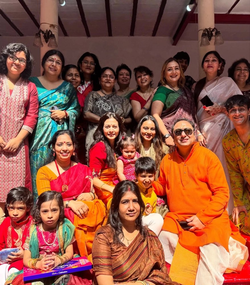 এক ফ্রেমে যেমন ধরা দিলেন বর্ষীয়ান অভিনেতা রঞ্জিত মল্লিক ও তাঁর বড়দিদি। অন্যদিকে, একরত্তি কাব্যও এই প্রথম দাদা কবীরের কপালে ফোঁটা দিল। বাড়ির সদস্যদের সঙ্গে খোশমেজাজে ধরা দিলেন কোয়েলও।