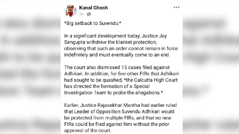 একটি বিষয়ে এদিন প্রশ্ন তুলেছেন কুণাল। তাঁর প্রশ্ন 'একজন ব্যক্তি কোনও মামলায় রক্ষাকবচ পেতে পারেন। একজন ব্যক্তি একাধিক মামলায়, ক্ষেত্রবিশেষে রক্ষাকবচ পেতে পারেন। কিন্তু একজন ব্যক্তি ভবিষ্যতে কী করবেন, সেটা না জেনে, আদলত কখন, কীভাবে রক্ষা কবচ দেন? বিচারপতি জয় সেনগুপ্ত বলেছেন, অনিদির্ষ্টকাল এটা চলতে পারে না। তিনি প্রত্যাহার করেছেন। তিনি আরও কয়েকটি মামলা খারিজ করেছেন।' পাঁচটি মামলার তদন্ত করবে এসআইটি।