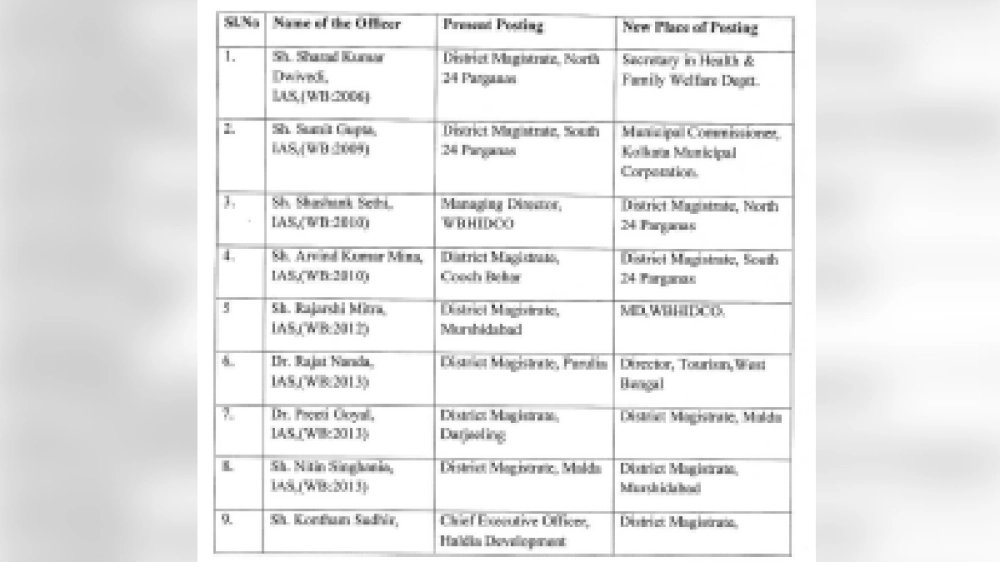 নবান্নর জারি করা এই বিজ্ঞপ্তিতে, তালিকায় জেলাশাসক, অতিরিক্ত জেলাশাসক, মহকুমা শাসক-সহ কোন কোন আমলা-